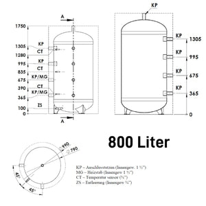 Vyrovnávací zásobník topné vody WGJ-BE 800/1000