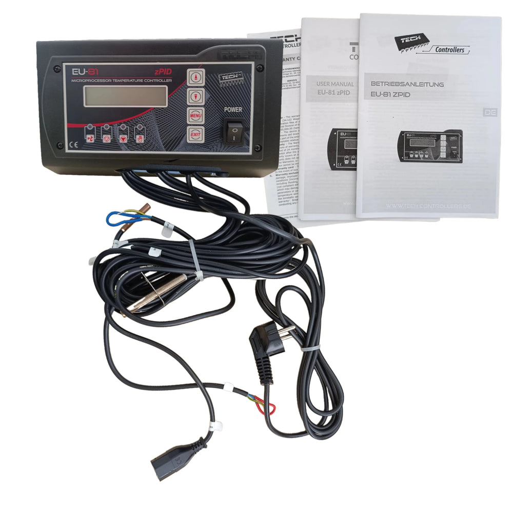 Ο ελεγκτής TECH EU-81 παρέχεται ως ολοκληρωμένη λύση και περιλαμβάνει όλα τα απαραίτητα εξαρτήματα για άμεση χρήση. Το τυπικό πακέτο παράδοσης περιλαμβάνει τον ελεγκτή θερμοκρασίας, αισθητήρες θερμοκρασίας για κεντρική θέρμανση και ζεστό νερό χρήσης, καθώς και ένα εύχρηστο εγχειρίδιο λειτουργίας.