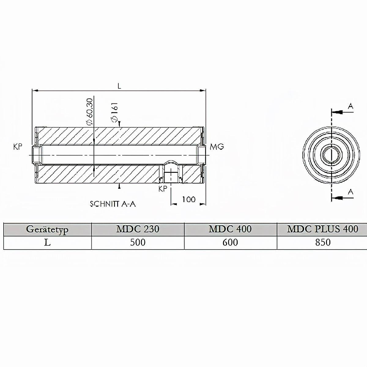 • Mått MDC400 (diameter x längd): 161 mm x 600 mm
